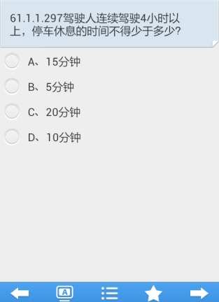 新法规驾校宝典使用2013年最新题库,为参加驾驶员交规模拟考试的学员提供了高保真的考前练习,让你交规模拟考试轻松通过。各位驾驶员可以先逐章节练习,再随机练习,还可以模拟考试。更有法规方面的详细指南。祝各位顺利通过!