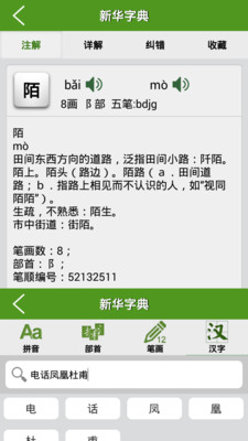 7、每个字包含了详细的字的解释和用法,以及字的拼音、笔划、部首、五笔等信息。