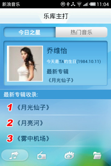 中国最大正版音乐网站——新浪音乐官方出品,完全永久免费版,支持网络音乐在线搜索、本地音乐播放于一身的一款使用、小巧、功能丰富的播放器软件;更多功能敬请期待!