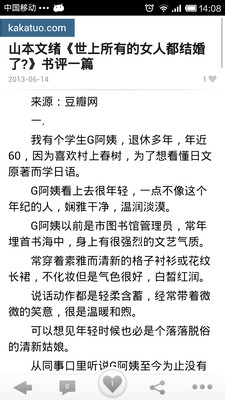 本软件包括爱情文章,友情文章,亲情文章,生活常识,励志文章,经典文章等十个栏目.情感美文、心情日志,原创文章免费阅读,内容丰富,贴近生活。无插图节约流量,支持字体缩放,带书签管理功能。拥有25万会员,原创文章每日及时更新。包括爱情文章,亲情文章,友情文章,生活随笔,人生哲理,励志文章,英语文章,搞笑文章等。