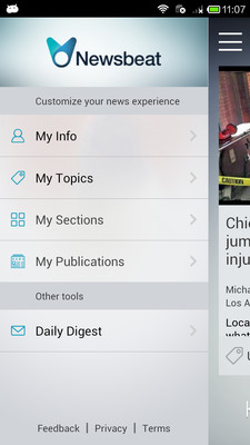 Newsbeat是由美国论坛报业集团(Tribune Co)推出一款全新的智能手机应用,该应用可朗读用户定制的新闻报道摘要以及天气和交通信息。