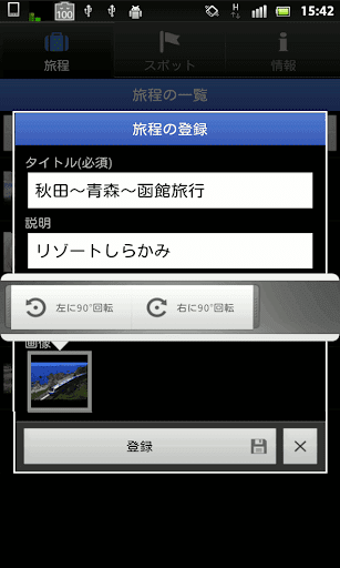 旅程の作成、スポットの作成時に画像をWEBから検索し登録することができます。