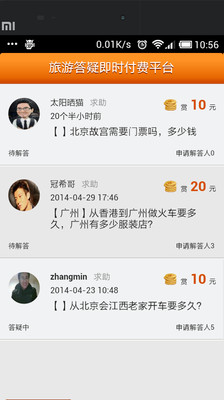 “旅游答疑”,就是建立用户帮助用户的即时付费沟通平台,悬赏人付费发求助,答疑人解惑赚钱。