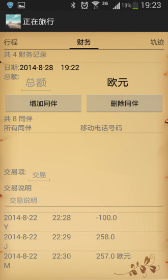 在旅行中,能够使用这个App记录旅行过程中的帐务,以及通过读取GPS数据,纪录旅行的过程轨迹.