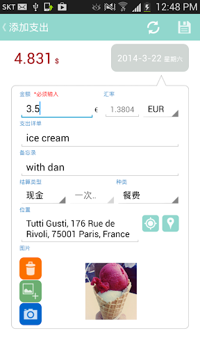 美元或欧元等海外货币,只需输入金额,制作账簿,Mint T Wallet就可以按照您设置的标准货币汇率,自动计算金额并显示。