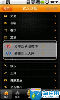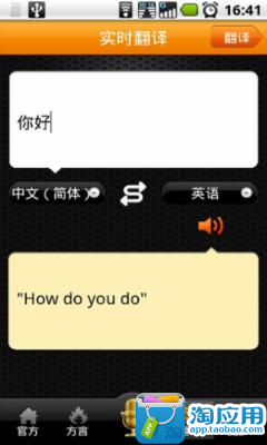 旅行翻译官让您的Android设备开口说话,由蚂蜂窝旅行网原创打造,软件包含40多个语种,每个语种根据不同的场景进行分类,如交通、问候、银行、购物、娱乐、餐饮等。* 每条语句点击即可发音,简单方便* 全中文界面* 默认支持中英文翻译* 多国语音包* 录音分享* 实时语音翻译