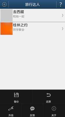 主要功能包括旅行活动管理、行程路线设计、景点管理、美食管理、特产管理、旅馆管理、消费管理、游记撰写、成员管理、装备管理、保险管理、注意事项管理、分享游记到腾讯微博等等。注意:在旅馆管理过程中,程序需要手机电话权限,用于拨打旅馆订房电话。另外为了提高程序中内嵌广告的精准投放效果,根据哇棒手机广告平台的要求,需要手机的通讯录访问权限。本程序承诺依法保护使用者的隐私权。