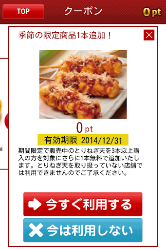 日本一の店舗で使えるお得なクーポンが入手出来ます。アンケートの回答やプッシュ通知などで限定クーポンも配信するのでお見逃しなく!