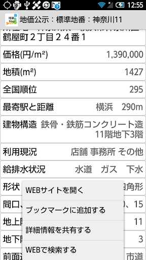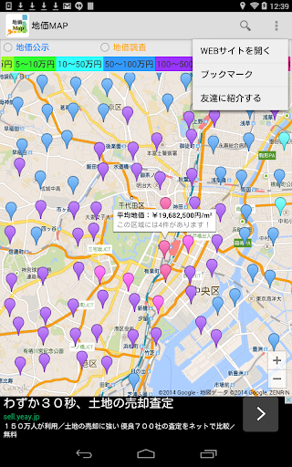 画面の地図を移動しながら、周りの地価情報を表示してくれる決定版の地価アプリです。