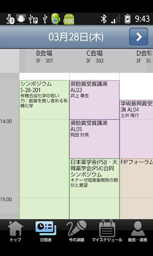 会期中、その時刻に発表されているセッションが一覧表示します。