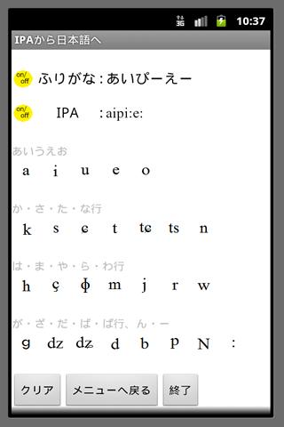 日本語からIPA(国際音声記号)へ、IPAから日本語へ変換してくれるアプリです。