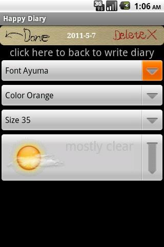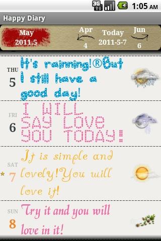 你可以选择每篇日记的字体,字体颜色,字体大小,天气图标。每一天都有新的心情。