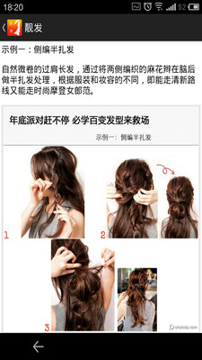 应用内容包括:靓发造型、纤体塑形、妆扮技巧、护肤、呵护、.服饰搭配;各种达人街拍,欧美范,日、韩、学院风应有尽有。