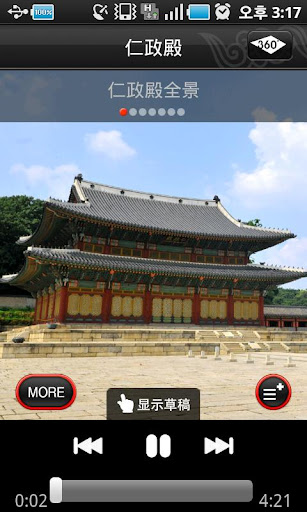 -. 故事说明:提供昌德宫设施相关的有趣说明(音频及文字)和现场照片。