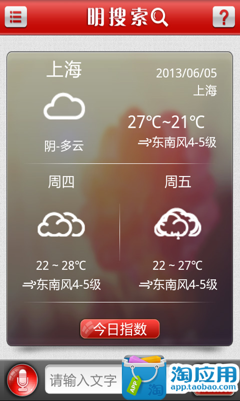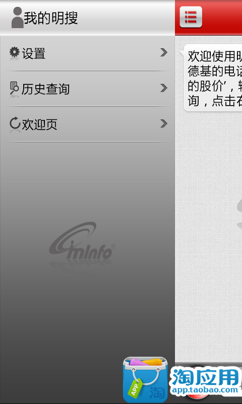 "明搜索" Android Beta版是上海明复信息技术有限公司新推出的面向Android的智能手机客户端搜索软件什么是"明搜索"?"明搜索"是中国目前唯一能够以自然语言进行搜索的服务,也是唯一能够跨平台搜索的服务"明搜索"有哪几种服务形式及内容?"明搜索"支持手机短信、WAP(手机上网)、 IM(MSN即时通讯工具)、手机内置程序目前 提供的服务涵盖天气、餐饮、航班、股票、健康 常识、等30多种与生活息息相关的功能您可以在页面搜索框输入搜索内容,按搜键,页面返回搜索结果;如:输入川国演义后点击搜键 也可以直接选择页面的频道分类,如本地新闻进入明搜索的某个子频道使用搜索服务 还可以在页面搜索框输入搜索内容,按频道分类,进行频道内搜索如:输入周杰伦后点击铃声频道