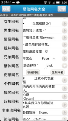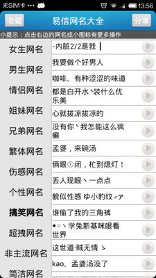 2.支持收藏网名功能,你可以把喜欢的网名收藏起来;