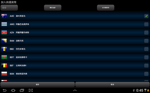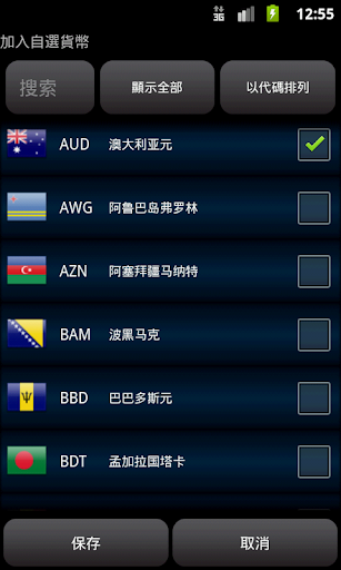 注意:如果需要添加或者刪除貨幣,點選兩個其中⼀一個國旗(屏幕上⽅方)然後再點選‘顯⽰示全部’! !
