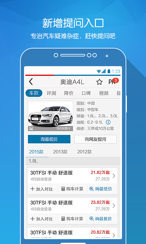 2、找车型、查报价:方便快捷检索车型信息,七千四百款车型价格参数一目了然;
