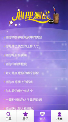 《星座大全》是由第一星座网制作的第一款手机软件,该应用可提供星座密码、查询、配对、运势、生肖、血型同时还有星座热点资讯以及心理测试。