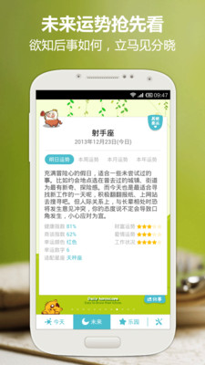 星座运势变变变!~2014神奇的到来啦!~想知道新的一年里你的财运、工作运、桃花运吗?屏住呼吸,马上揭晓啦!本年度最准的运势类应用火热出炉,最客观的分析,最准确的建议直中你的要害!~想在新年俘获TA的芳心吗?想成为战斗力超凹凸曼的学霸狂人吗?快来探寻你的神秘星座之旅!~