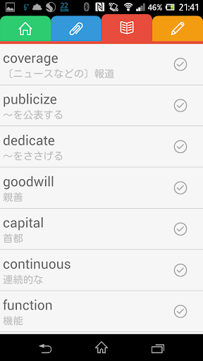 映画の進行とともに、映画内に出てくる重要英単語も動画の下にリストアップ。チェックをつけると自分だけの英単語帳を作ることが可能!