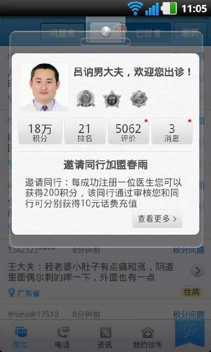 “春雨手机诊所”介绍。 中国领先的专业移动医疗服务应用——春雨掌上医生推出的专门针对医生的医生版客户端。
