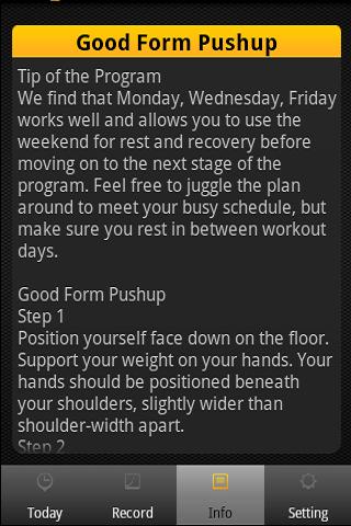 “是猛男就做100个俯卧撑”运用科学的方法, 通过做俯卧撑的方式, 一步一步的帮助增强您的肌肉耐力。如果您按照计划一步一步来实行, 那么, 您在6周以后, 基本能一次性就做完100个俯卧撑。本工具适合不同体质的用户使用, 如果您以前很少锻炼, 使用本工具能一步一步的增强您的体质, 如果您以前经常锻炼, 使用本工具, 能帮您进一步增加肌肉的力量。良好的UI设计和易用性设计, 使您在进行俯卧撑时, 会充分感受运动带来的轻松愉悦感与舒适感。,