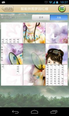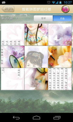 这是一款能拍照并制作实景的拼图游戏,游戏包含10套左右的精美拼图模板,每个拼图都有3个难度等级,如果觉得不过瘾,那就打开相机,随时随地捕捉实景画面,制作拼图吧,新制作的拼图会自动出现在列表里,难度等级也自动生成了,慢慢挑战吧。