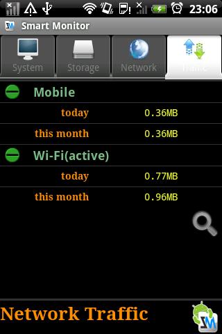 监控网络流量(WiFi/3G/EDGE/GPRS),可设置流量提醒,查询流量历史