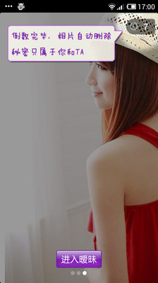 【暧昧】让你分享的图片不再有被窥视的烦忧!分享图片的同时,你完全掌控对方查看图片的时间长短,当时间一到图片自动删除,不会再担心被第三个人知道。就算被截屏,你也会知道。