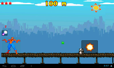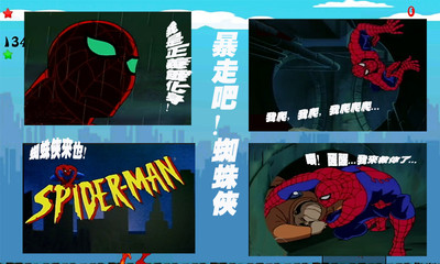 蜘蛛侠崛起了,快来扮演蜘蛛侠拯救世界吧。游戏操作简单,只需简单的动动手指,就能让你感受到游戏的乐趣。游戏中有各种各样可爱的小怪,小清新画面。蜘蛛侠配备小型攻击,和技能释放。各种好玩就等你来!!向后滑动屏幕减速,向前滑动屏幕加速。搜集五个绿星奖励一个技能。和伙伴比比,看谁跑得远。