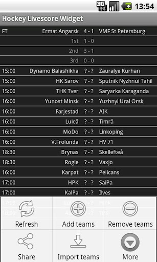 您決定想以這款曲棍球即時比分 APP 追蹤哪些隊伍。您在功能表中依照您的興趣新增和移除隊伍。預設中未選取即時比分隊伍。這款應用程式已預載全世界的隊伍。如果您最喜歡的隊伍不包含在名單之內,您可以馬上匯入。