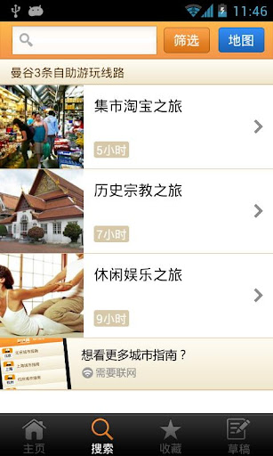 无论你是要搜索曼谷最受好评的度假酒店?还是需要一份香港一日游的日程安排,或者只是在东京查找离你最近的中餐馆?驴评城市指南都可以帮你做到,便捷查询城市中旅行相关信息,快速找到最适合自己旅行的需求。