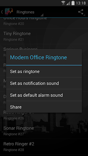 - 设置为铃声,通知声音(SMS,电子邮件),或默认的报警声(点选并按住的选项菜单中选择所需的铃声弹出)