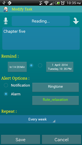 ✔為重複任務寬選擇題(每x小時x天,週末, ... ) 。