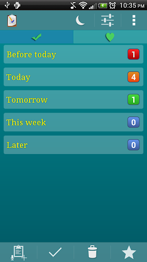 ✔任務按時間順序組織五個選項卡(在今天之前,今天,明天,這個星期,後來) 。