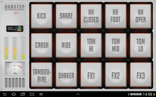 - 選擇儀器的聲音,如:踢,死機,網羅,TOM,手鼓,振動篩,腳和更多