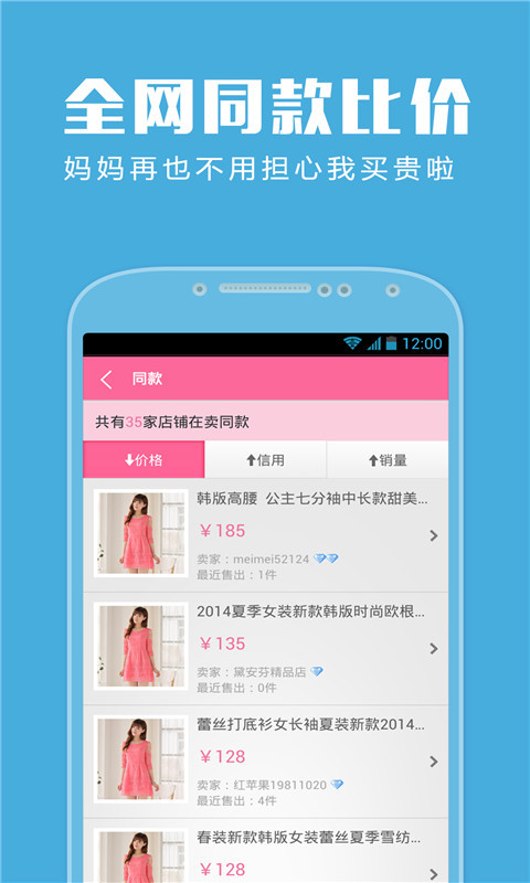 3、【同款比价】每一件衣服,都会显示其他商家的同款,全方位比较,不用担心衣服买贵啦;