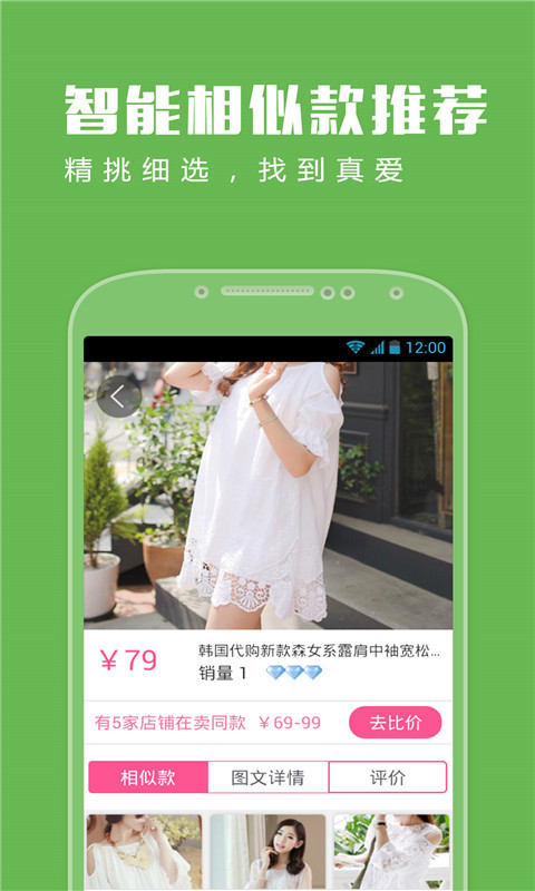2、【智能推荐】从你喜欢的一件衣服开始,智能推荐相似款同款,给你全新的逛街体验;