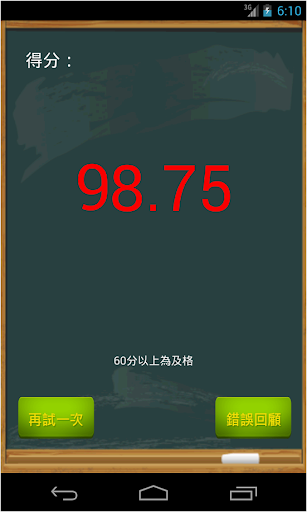 d. 測驗完成後立刻顯示得分,可選擇再測驗或是錯誤回顧