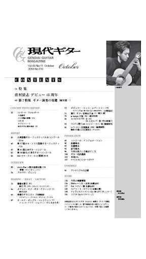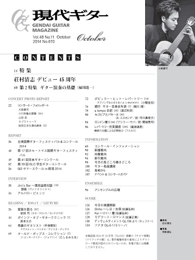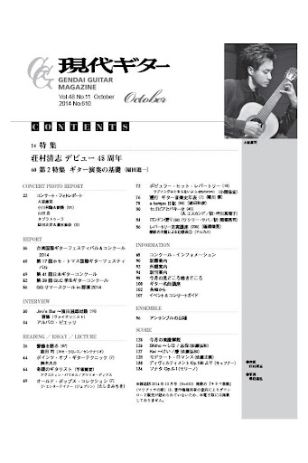 クラシック・ギターの専門誌、月刊「現代ギター」は、現在国内外のギターを愛する人々に広く読まれており、特に毎月のユニークな特集記事や貴重な楽譜はたいへん好評です。取り上げる記事もルネサンスから現代音楽までと幅広く、フラメンコ、古楽、ウクレレ関係も連載されています。もちろん、国内ニュースや海外の話題、新刊書や新譜CDの案内、コンサートガイドとレビューなど、最新情報も豊富です。