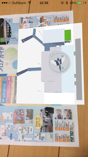 館内に設置しているフロアガイドの表紙をスキャンすることでターミナルビル外観の3D画像を見ることができます。