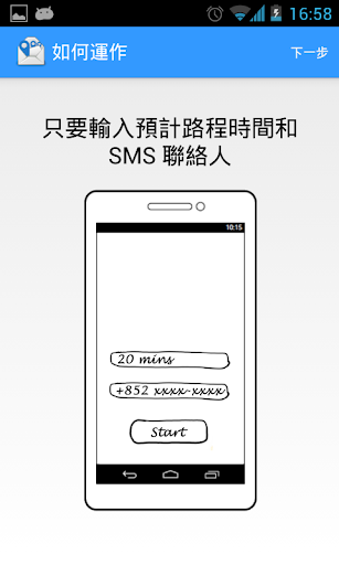1. 先輸入你的預計路程及 SMS 緊急聯絡人