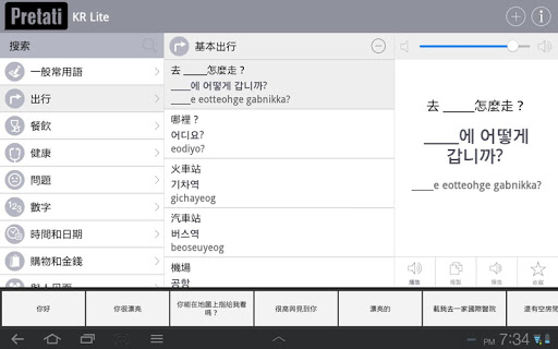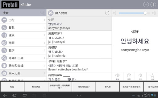 Korean Pretati應用非常適合外國旅客和那些想學習韓語的人。該應用擁有500多個常用短語,覆蓋10個不同類別,包括基礎知識、出行、餐飲、健康、問題、數字、時間和日期、購物和金錢、與人見面和其他有用詞語。