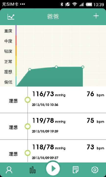 *?精选高血压常识。? 设备? 木木血压计创新式设计的小巧身形,出门在外也可轻松的随身携带,血压监控永不中断。? 测量? 每天只要需要测量两次,测量时间不超过1分钟,即可系统便捷地监控你的日常血压健康,为你寻医求诊、对症下药提供最科学及时的依据。? 分享? 家人测量后,您可马上接收到结果通知。? 服务? 测量数据云端空间存储,多终端共享数据,让健康数据一目了然,助您健康事半功倍。? 木木血压计?