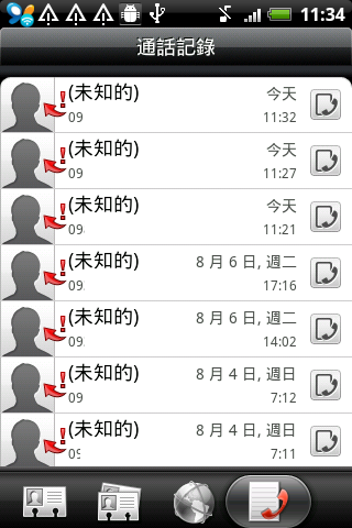 3.點電話圖示,可進入通話紀錄,右上角數字歸零