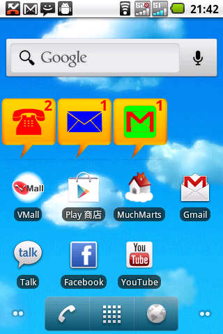 大圖示的未接來電/未讀簡訊/未讀Email小工具