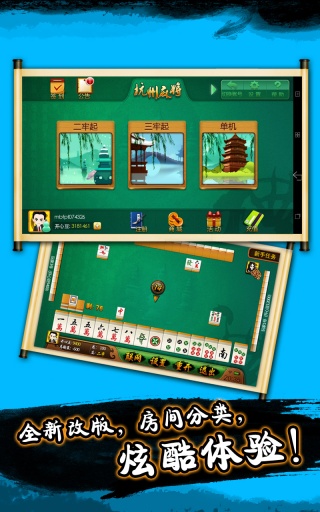 还在为没有麻将搭子群发短信和QQ么?杭州麻将手机版,让您随时随地都可以搓两把.