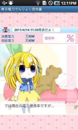 東京電力の電力使用状況を女の子が教えてくれるアプリです。