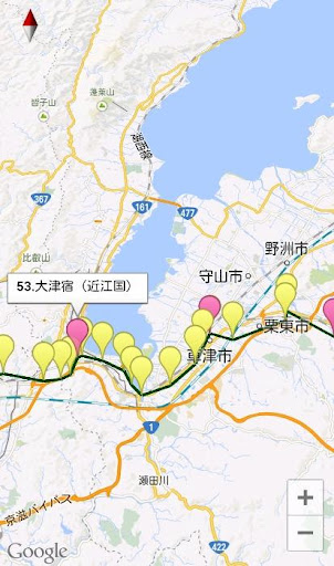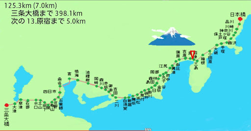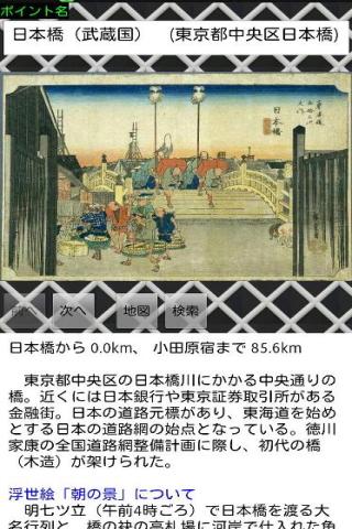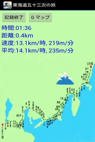 江戸日本橋から500km先の京都三条大橋を目指して、東海道を旅するアプリです。GPSロガー、万歩計としても使えます(手入力も可能)。歩く&走るを二倍以上楽しむことができます。進んだ距離に応じて、各宿場を安藤広重の浮世絵とともに紹介していきます。散歩やウォーキング、ジョギングのお供にどうぞ。Windows版はVector新着レビュー、窓の杜などに掲載されています。なお、Lite版には葛飾北斎の絵はありません。